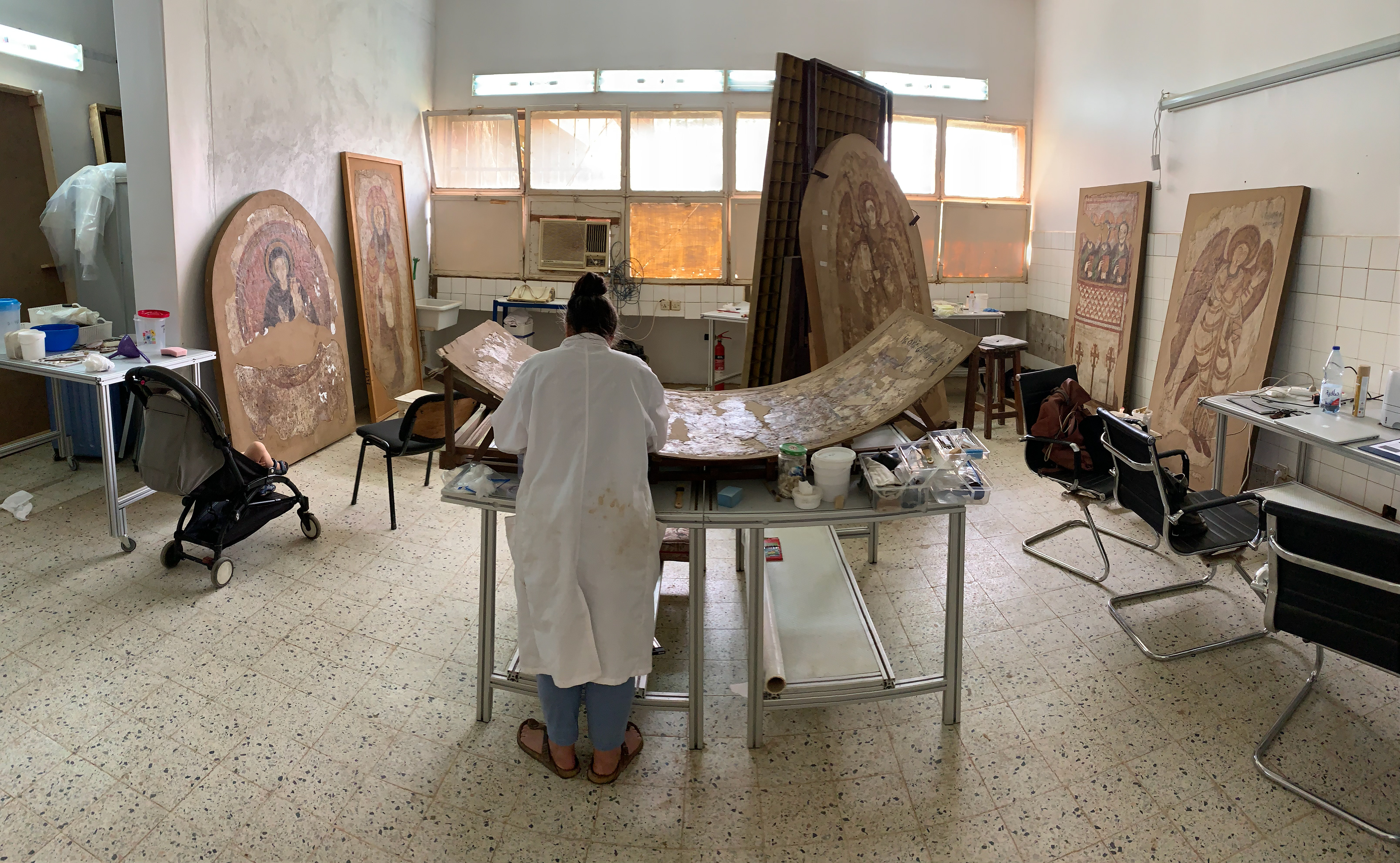 Opus Conservation, in collaboration with Rava Conservation, undertook the conservation of medieval wall painting fragments from the Faras Cathedral collection at the Sudan National Museum in Khartoum. Working alongside the museum’s conservation team and under the auspices of UNESCO and the National Corporation for Antiquities and Museums (NCAM), the project focused on stabilising, cleaning, and conserving a selection of detached mural fragments of significant historical importance.